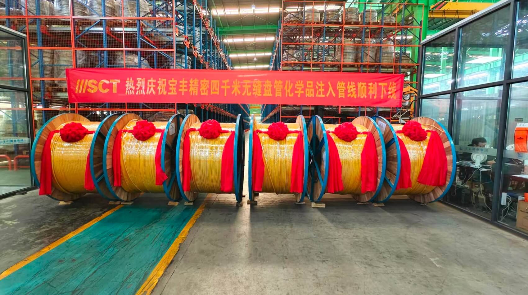 松阳宝丰精密洁净管有限公司是一家专业致力于不锈钢及特种合金钢超长盘管研发与生产的企业。由宝丰钢业集团与浙江景宁洁净钢管有限公司共同出资建设。生产厂房面积3万多平方,员工220余人,总投资1.5亿元,建有4条世界先进水平的不锈钢超长无缝盘管专用生产流水线。生产工艺采用:热挤压/旁孔+冷轧+冷拔+光亮真空固溶热处理。年产不锈钢无缝盘管12000吨,为石油、天然气、电力、半导体、核电、化工、船舶制造、新能源等领域提供安全可靠的产品。